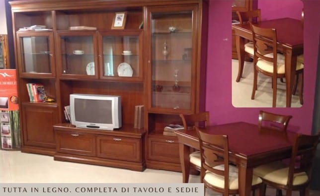 Tutta in legno, completa di tavolo e sedie